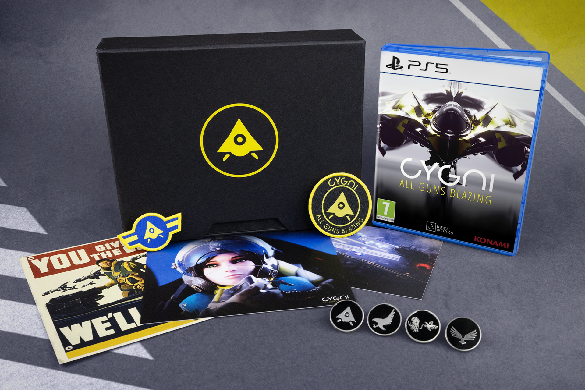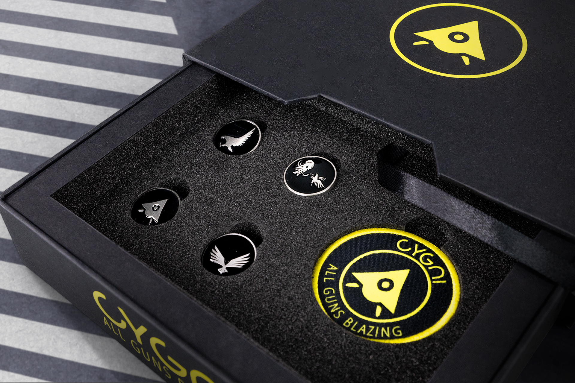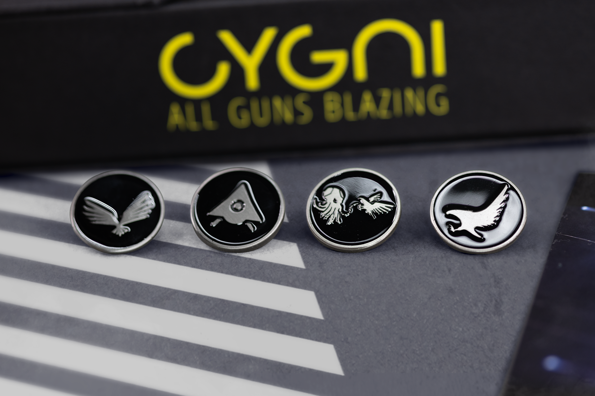 Inside the kits were physical copies of the PlayStation 5 version of CYGNI: All Guns Blazing. This was complemented by fabric patches that influencers could put onto their clothing, alongside bronze-and-black pin badges – all featuring cool logos from the game’s factions. Three high-quality art cards were also included, featuring CYGNI’s young female protagonist and ORCA spaceships.