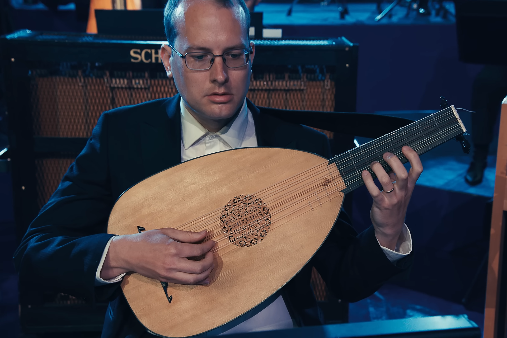 Seasoned BBC Proms participant Nigel Woodhouse, guitar legend (and ‘Guitar Whisperer’) Richard Durrant, BBC Concert Orchestra’s Alasdair Malloy (one of the few glass harmonica players in Europe), and British lutenist and musicologist Lynda Sayce made up the rest of our talented team.
