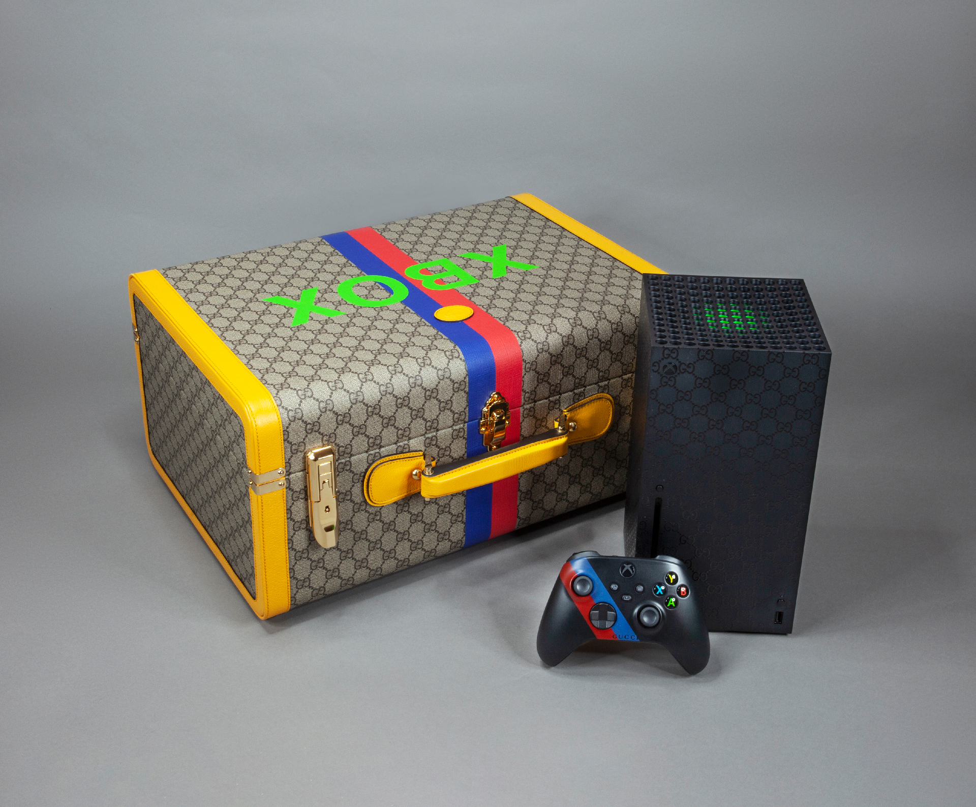 To celebrate Gucci’s centennial anniversary and Xbox’s 20th anniversary, we were asked to create 100 limited-edition Gucci-themed Xbox Series X consoles and controllers.