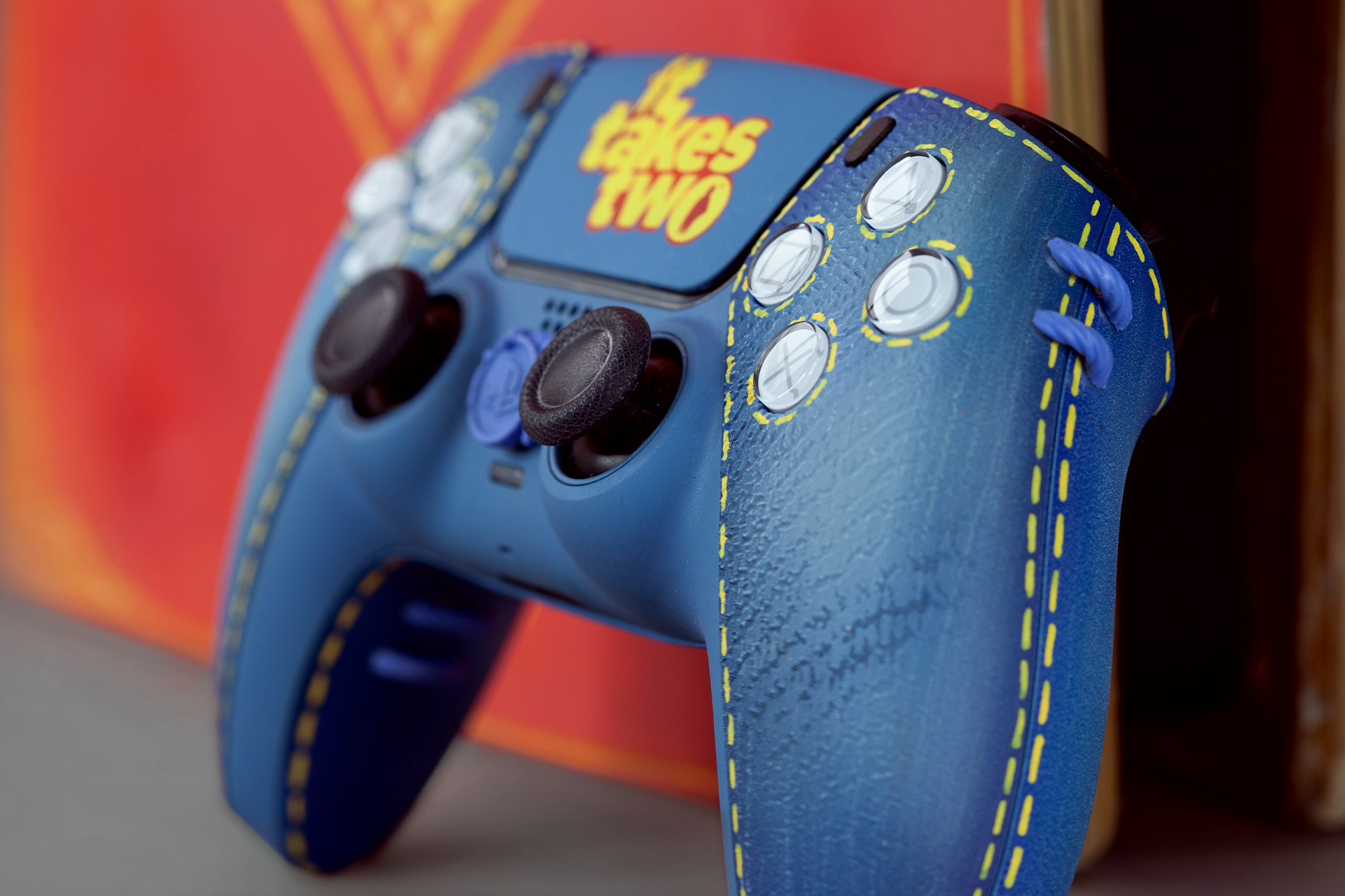 Following their victory at The Game Awards, EA asked if we could create custom It Takes Two Xbox Series X and PlayStation 5 hardware, alongside custom controllers, that could be given away to fans in a sweepstake to thank them for their support.