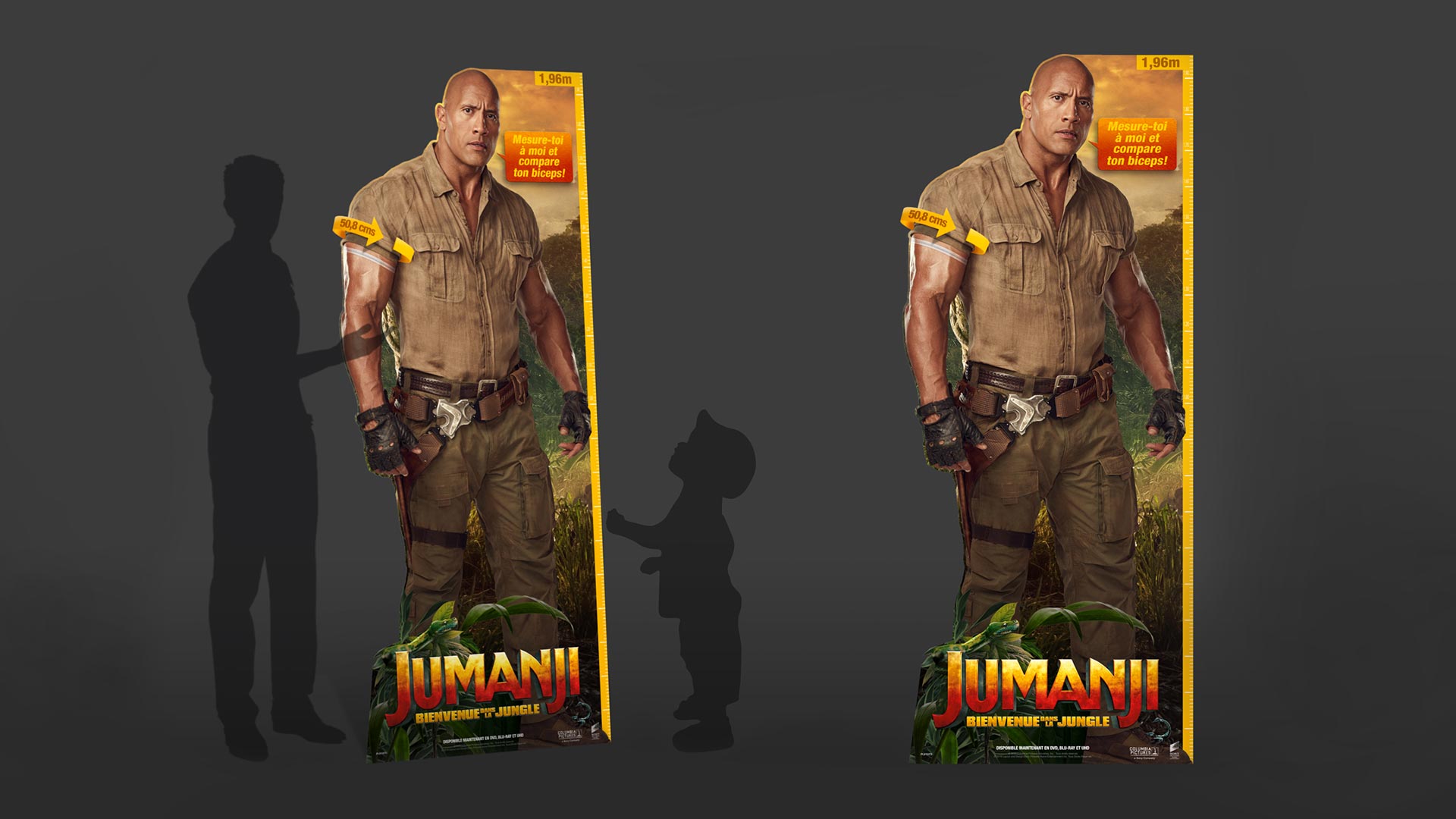 For the Jumanji: Welcome to the Jungle standee, TAKEOFF created a life-sized replica of the film’s star, Dwayne ‘The Rock’ Johnson. The POS stand featured every inch of Johnson’s six-foot-four frame complete with 20-inch biceps that members of the public could approach and compare themselves against – a great visual aide to help boost DVD sales.