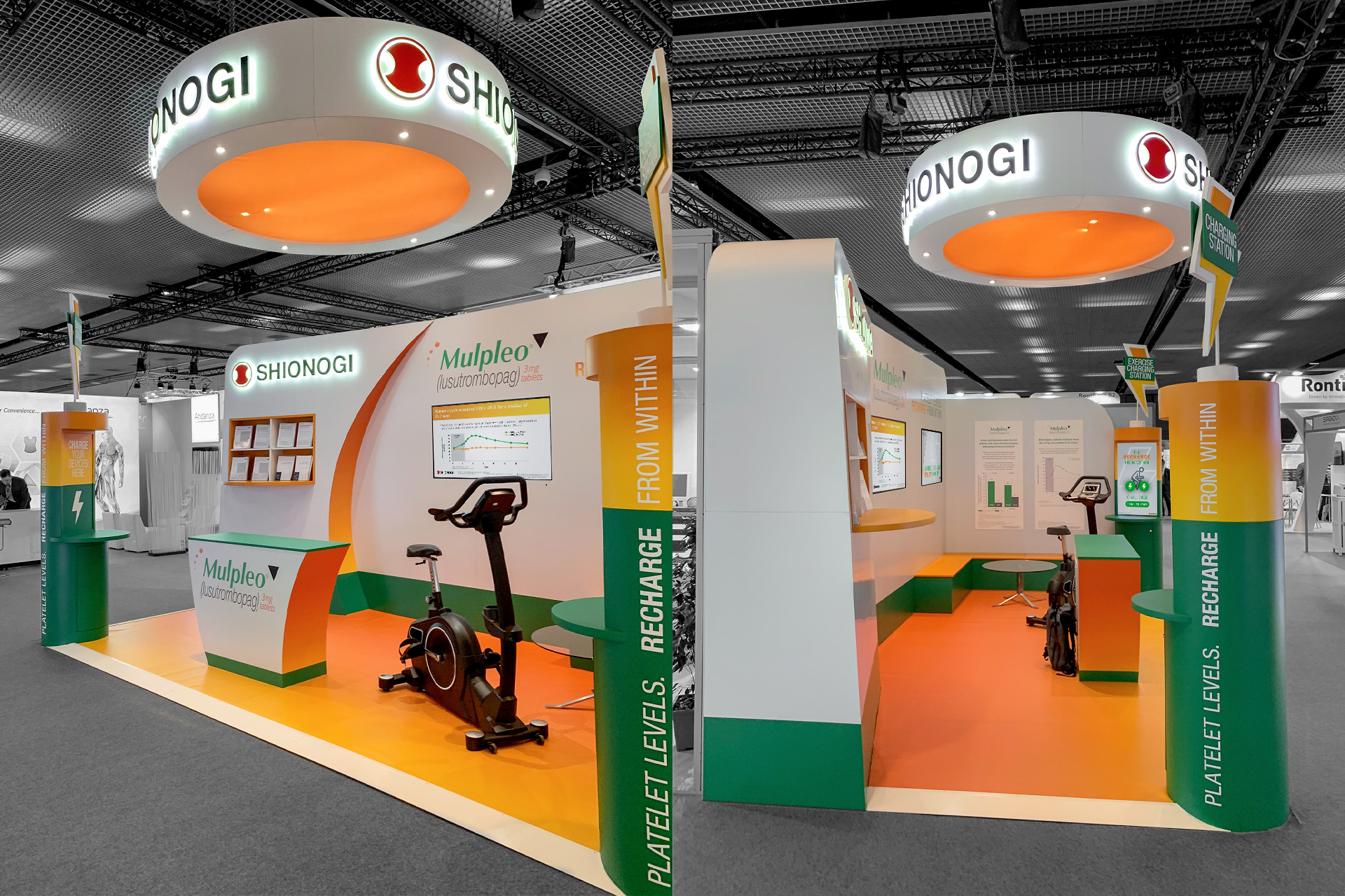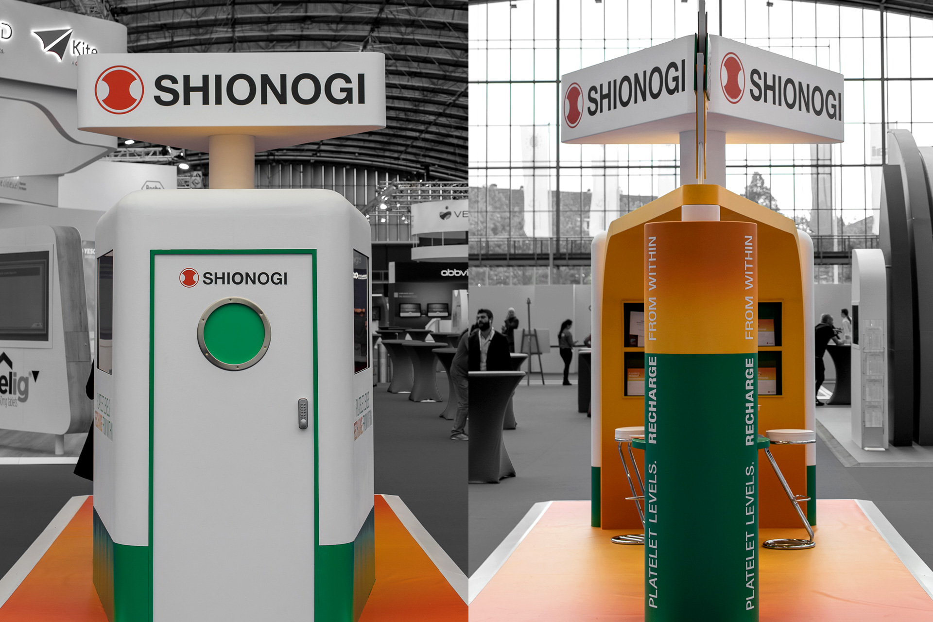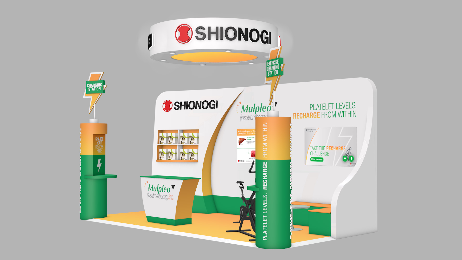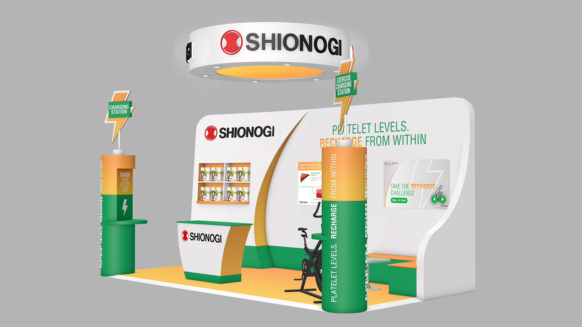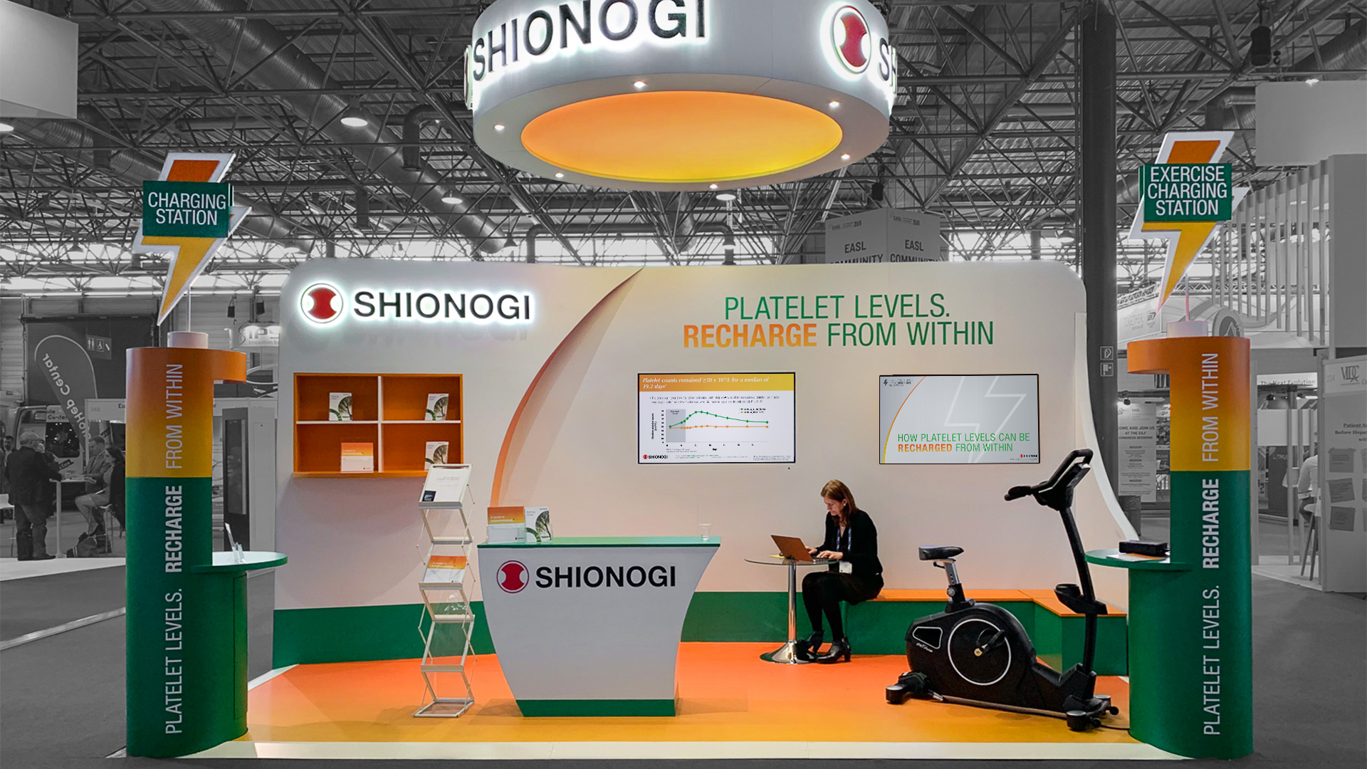 Shionogi needed bespoke stands and booths that used strong visuals and content to immediately convey the quality of their brand and attract footfall. Stands also needed custom functionality (including charging points and storage space) so ambassadors could concentrate fully on engaging with delegates.