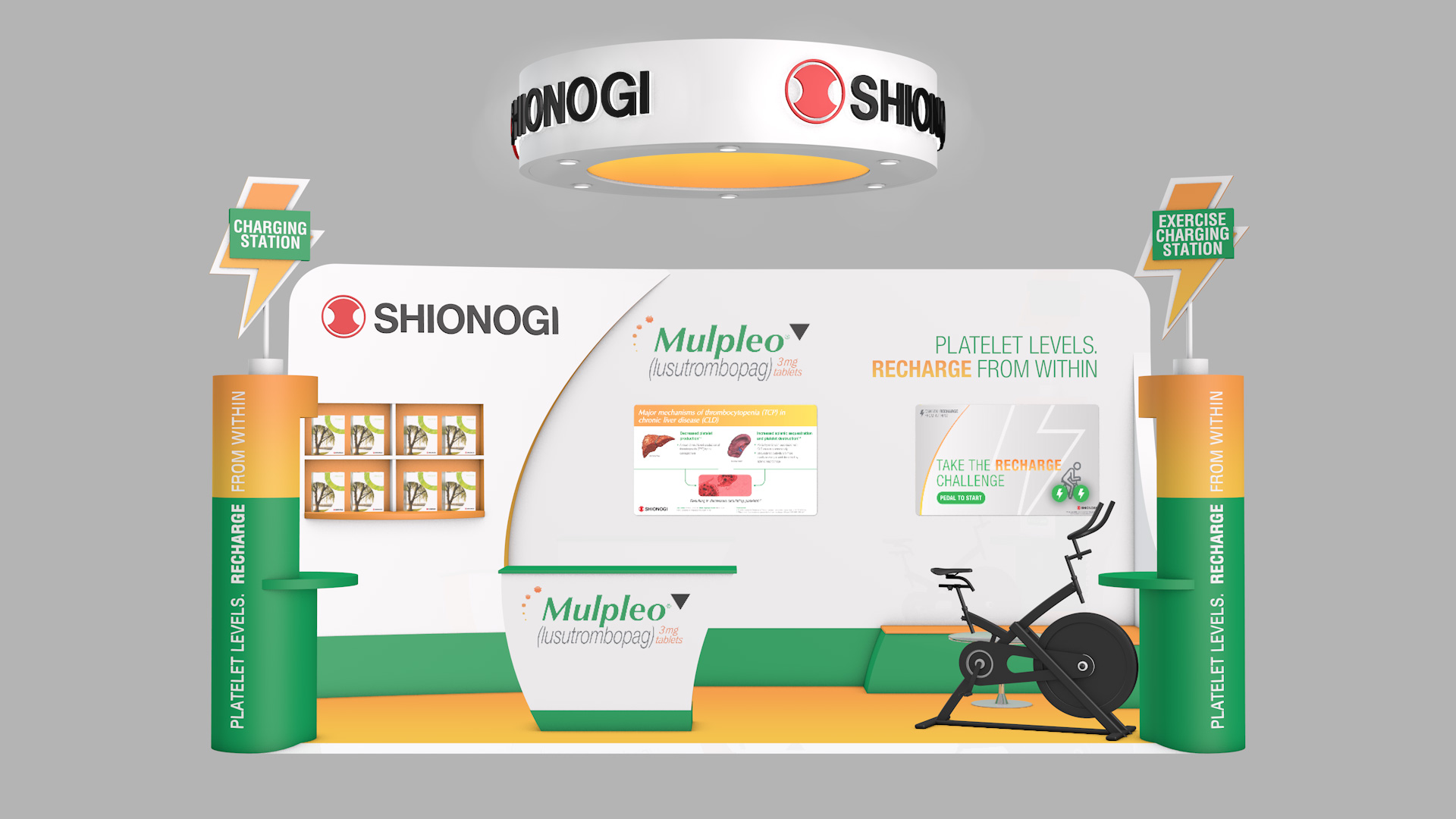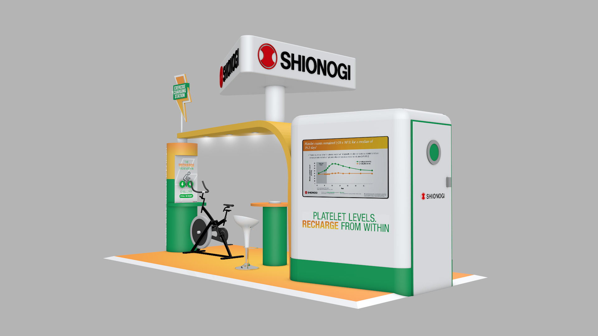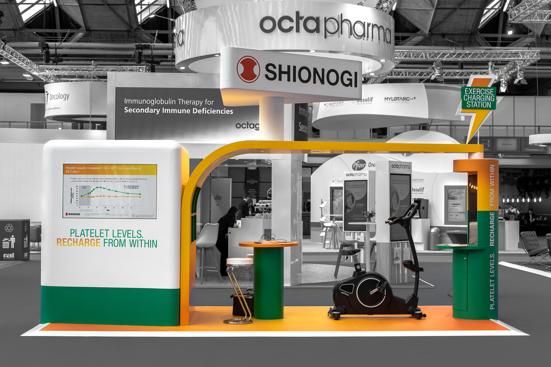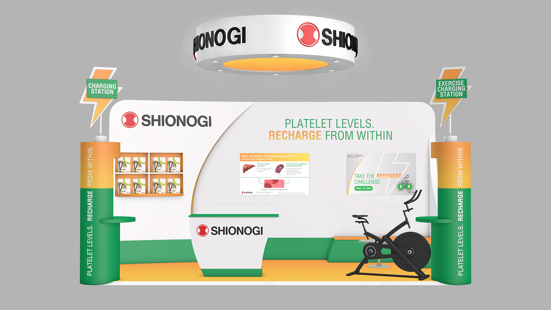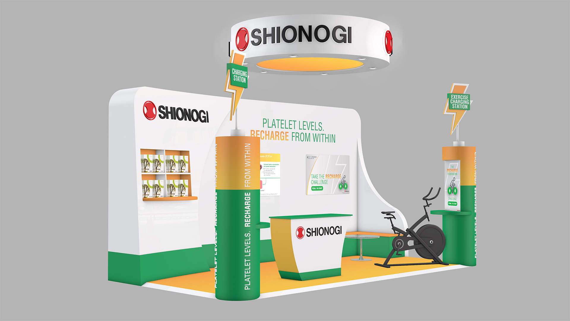 Shionogi needed bespoke stands and booths that used strong visuals and content to immediately convey the quality of their brand and attract footfall. Stands also needed custom functionality (including charging points and storage space) so ambassadors could concentrate fully on engaging with delegates.