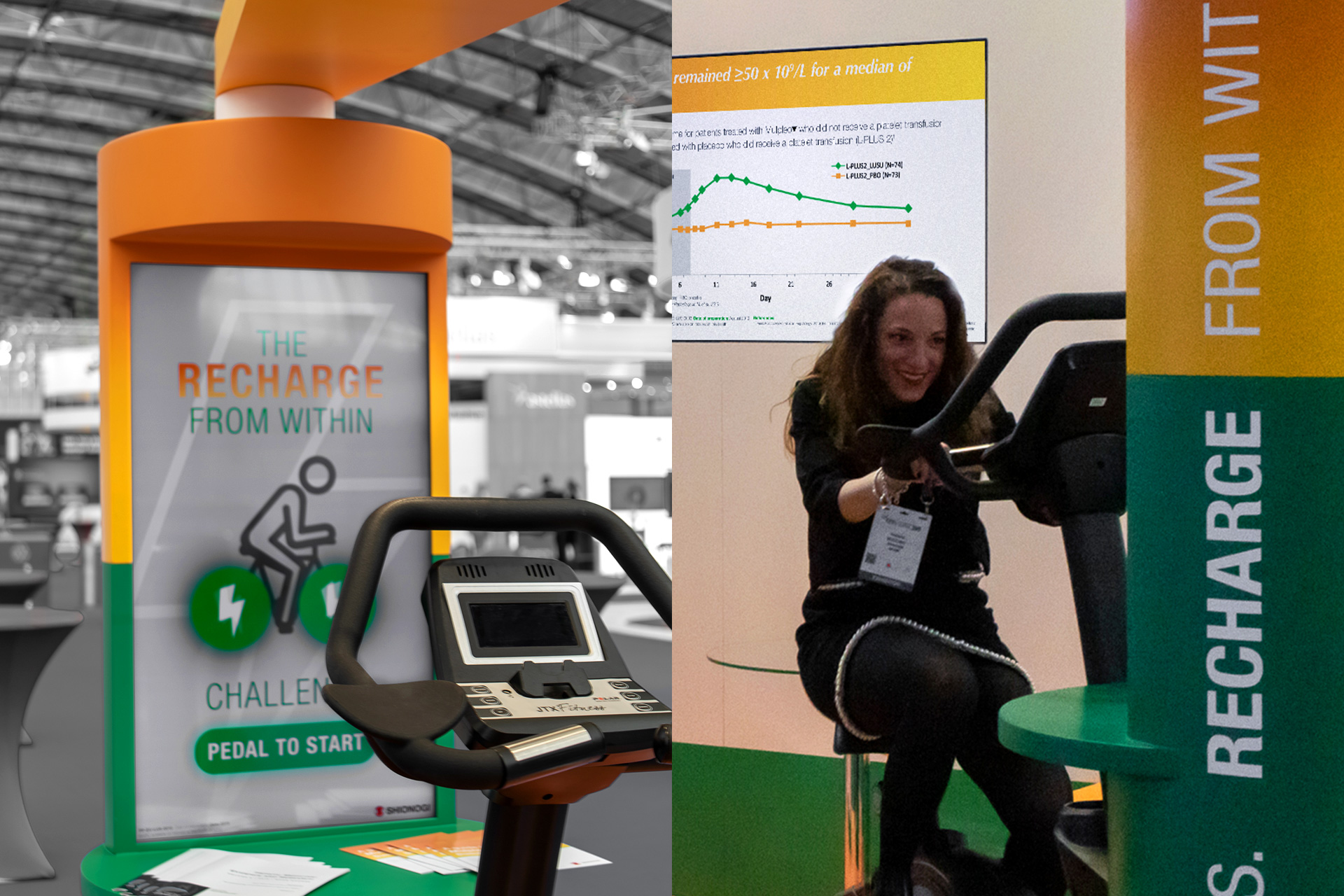 To differentiate Shionogi from the competition and attract footfall in fun, unique ways, our gamified exercise bike also made an appearance at Amsterdam, and was a great way for Shionogi to make use of the limited space available to them. The bike was complemented by our specially-built tables and stands, giving representatives peace of mind to allow them to focus fully on engaging and attracting delegates.