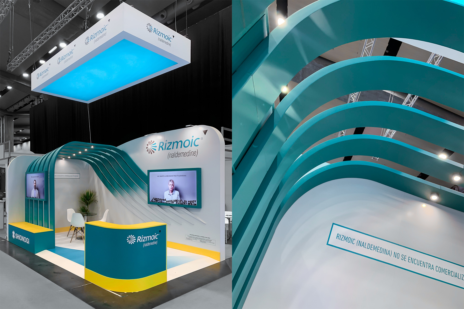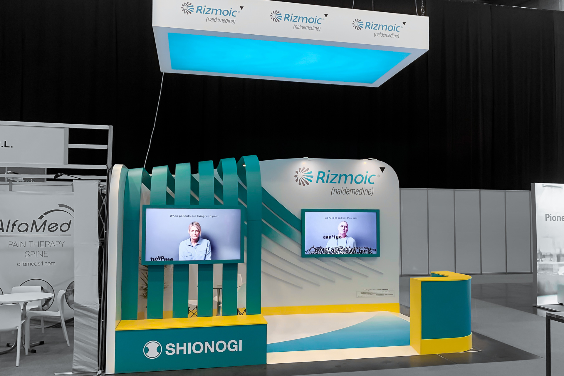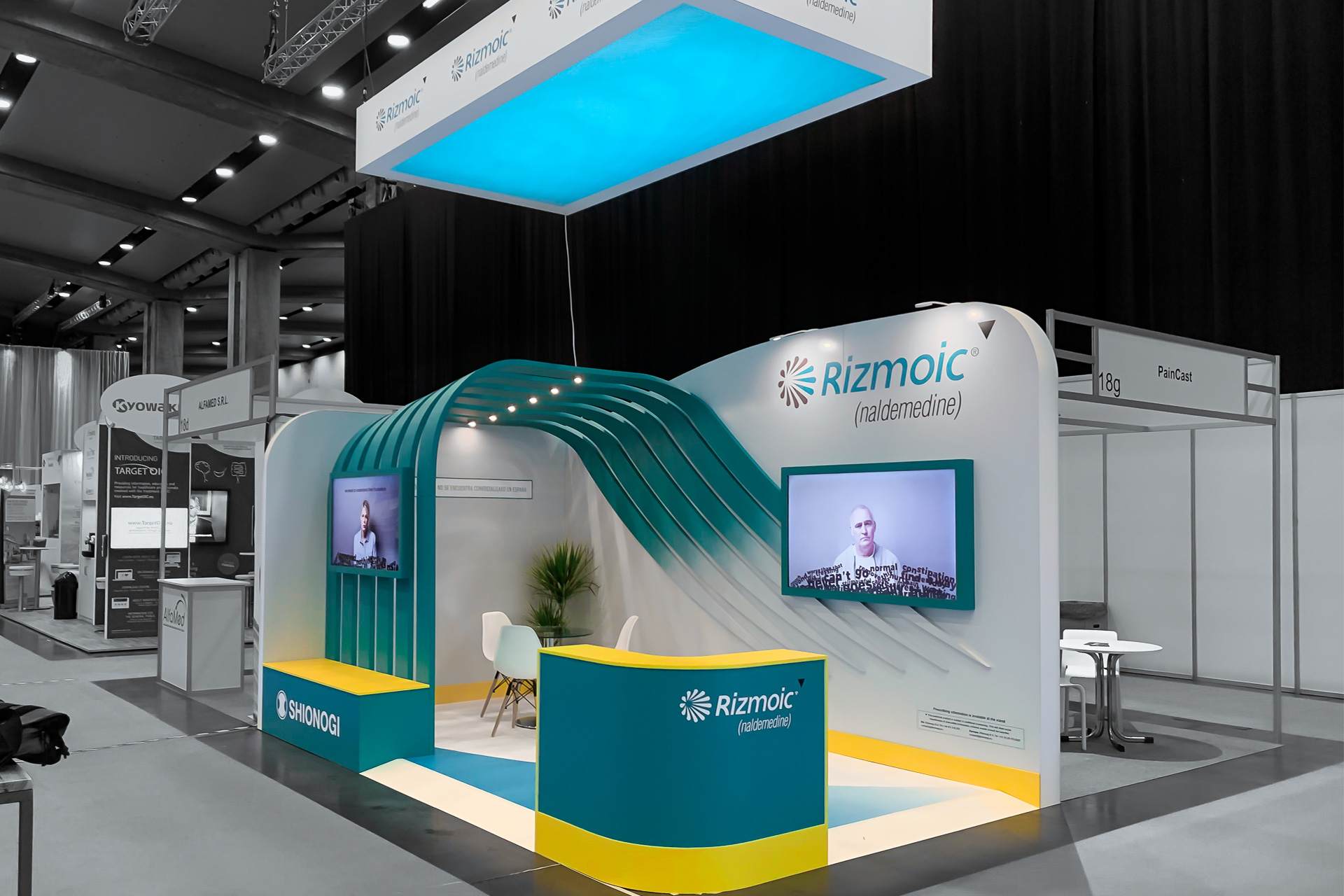 We had a lot of room to work with at EFIC 19, and activated a stand with specific focus on Shionogi’s Rizmoic product. Our stand had an attractive design incorporating features of the Rizmoic logo; two screens were built in to the stand (one outside to attract footfall, one inside to inform visitors) to give more information about Shionogi, while a table under a specially-created light provided an intimate setting for Shionogi’s team and prospects to talk.