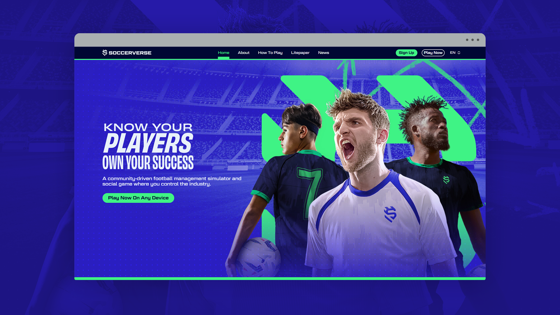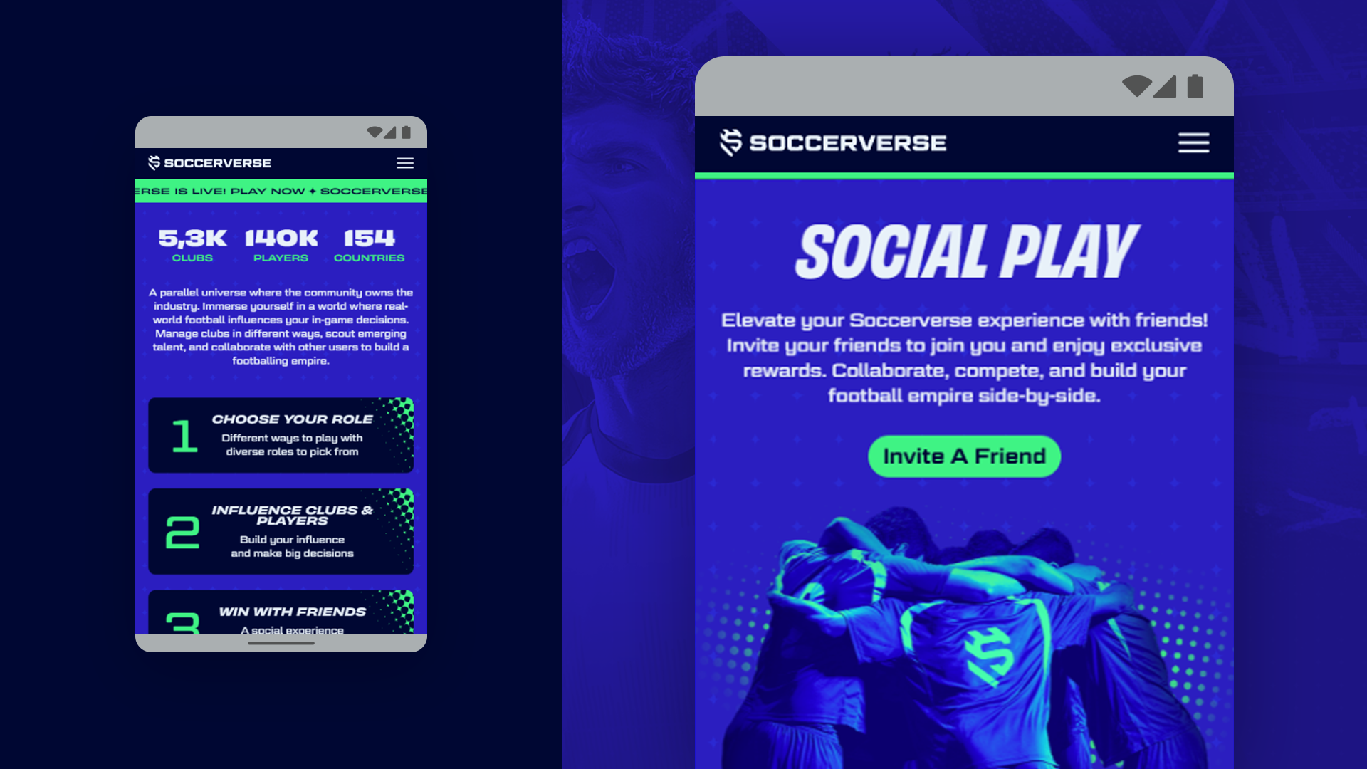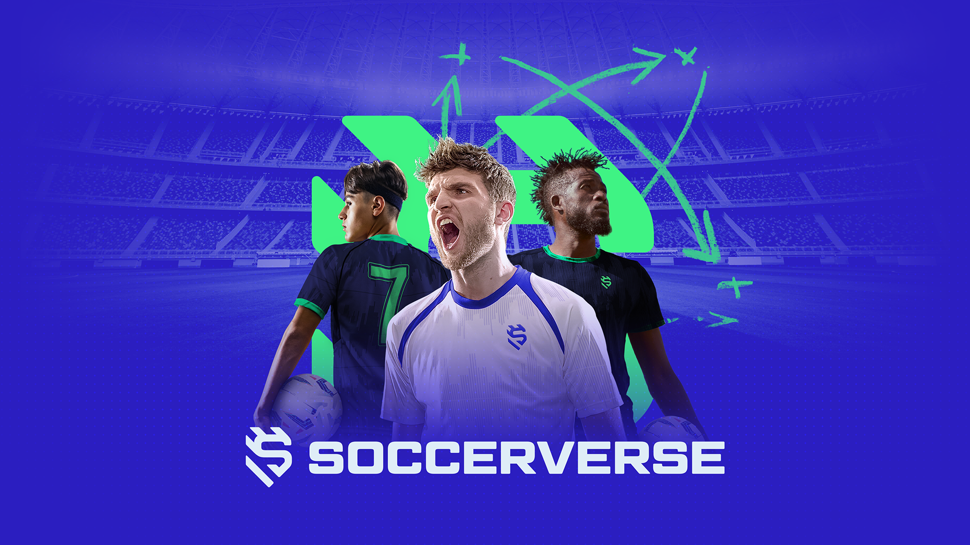 The key art was meticulously created to reflect the many roles within Soccerverse—capturing the excitement of being a manager, player, influencer, or scout.