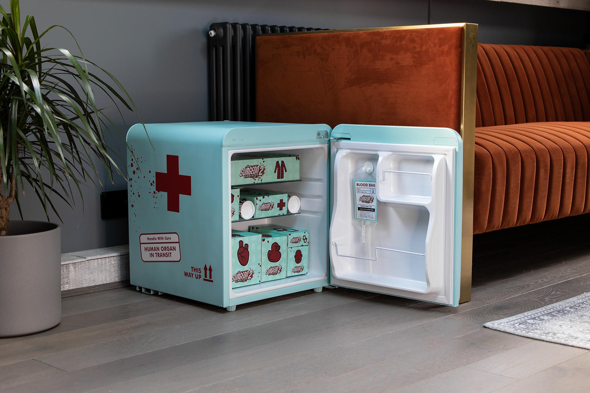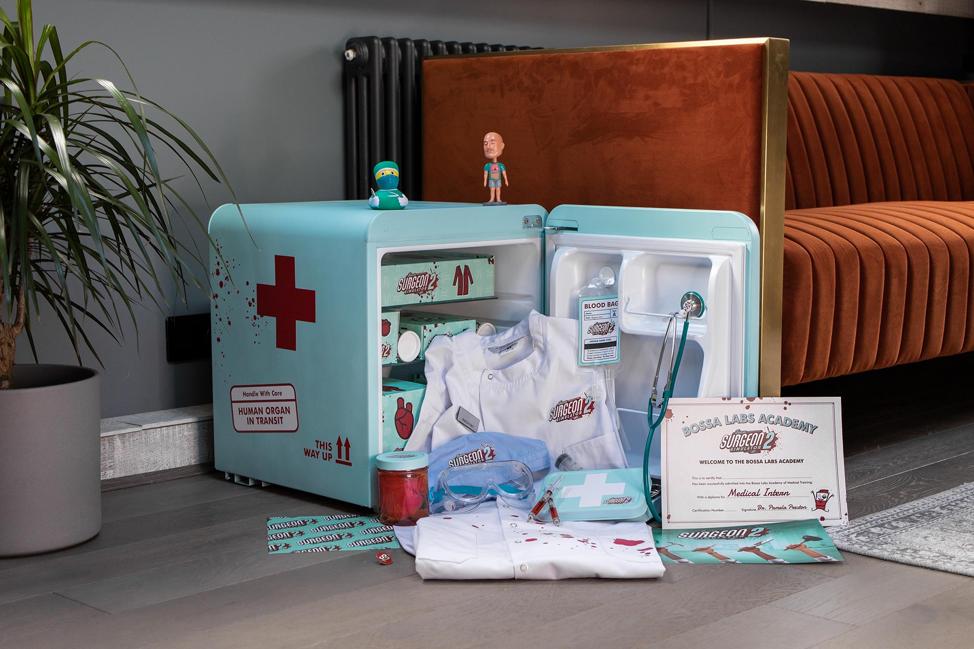 Encased in a fully-operational mini-fridge (built to resemble an organ donation box) was their very own ‘mad surgeon’ kit for influencers to wear while playing the game.