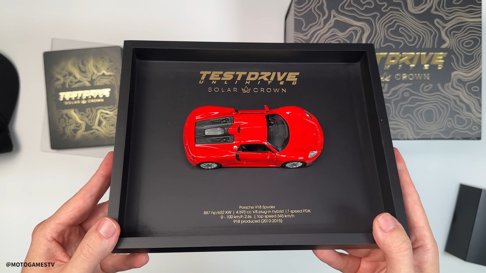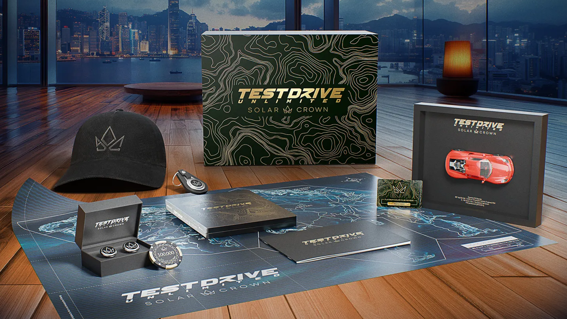 To bring Test Drive Unlimited Solar Crown’s world of prestige and high-performance racing to life, TakeOff designed a Collector’s Edition that embodies the game’s luxury-driven spirit. The set features a framed miniature Porsche 918 Spyder (1:36 scale), a numbered Solar Club Platinum membership card, and a sleek steelbook case.