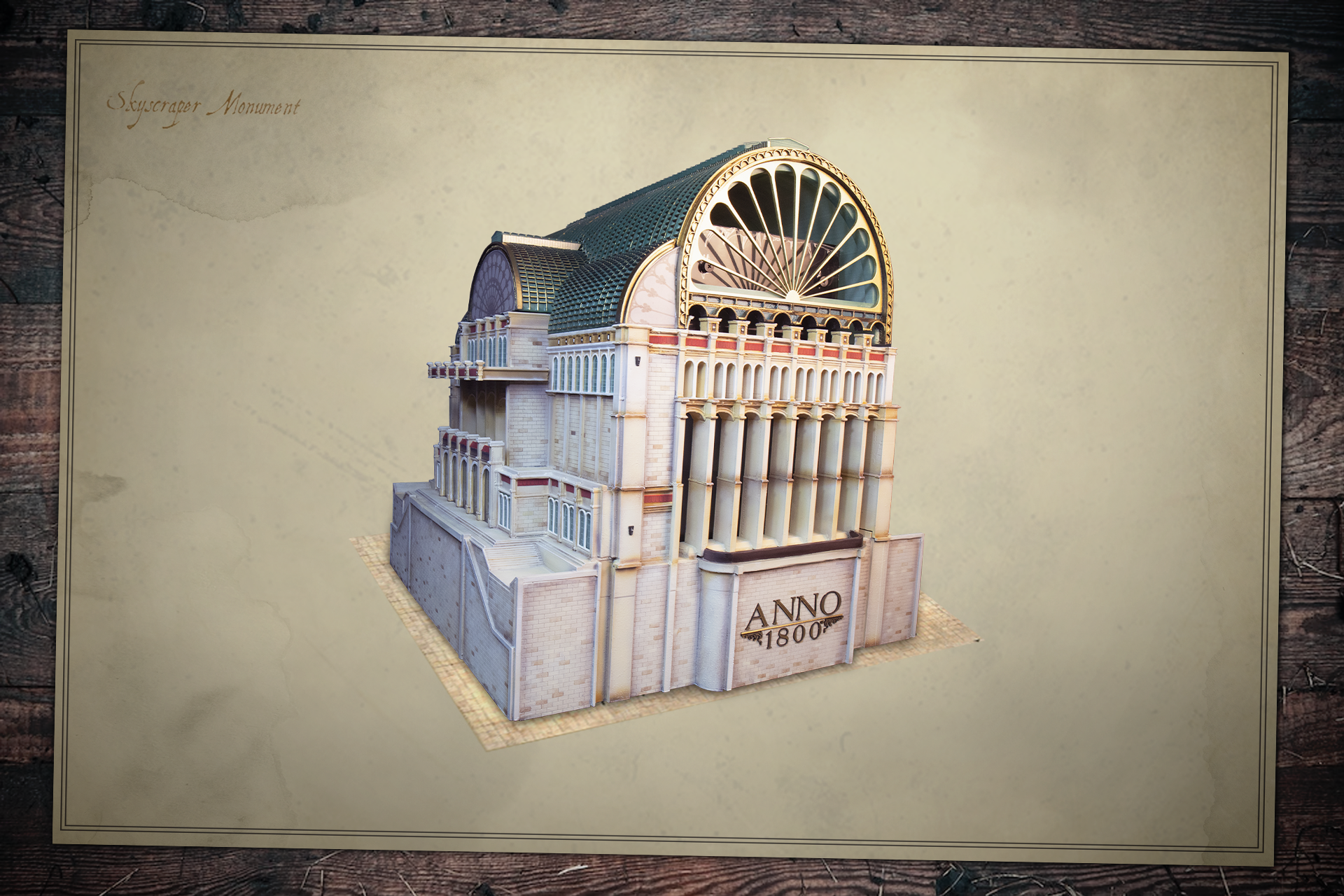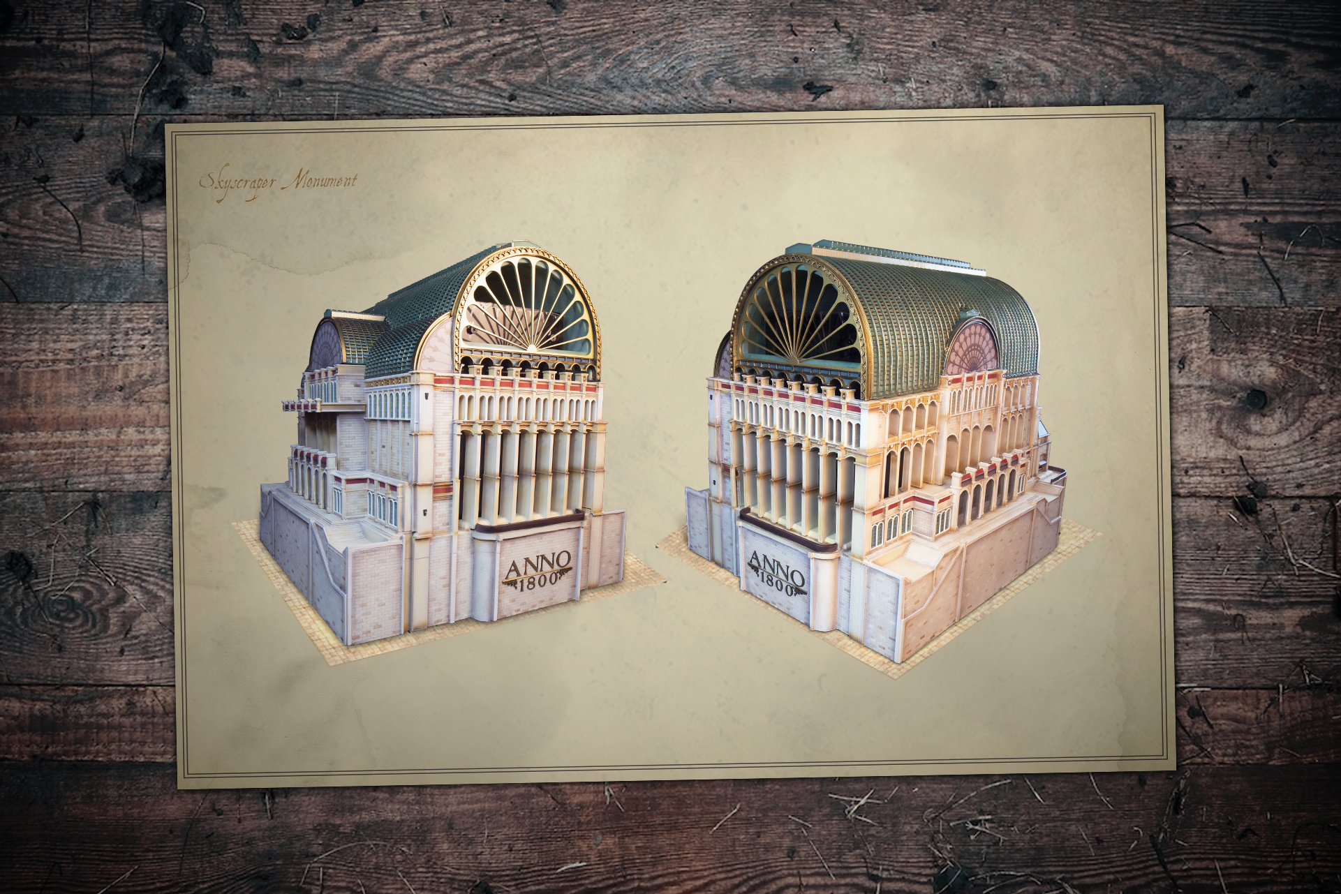 There is so much industrial excellence within Anno 1800 to draw inspiration from, but we finally settled on the in-game ‘World’s Fair’ monument – one of the most attractive buildings in the game (in terms of both design and monument benefits to an island!).