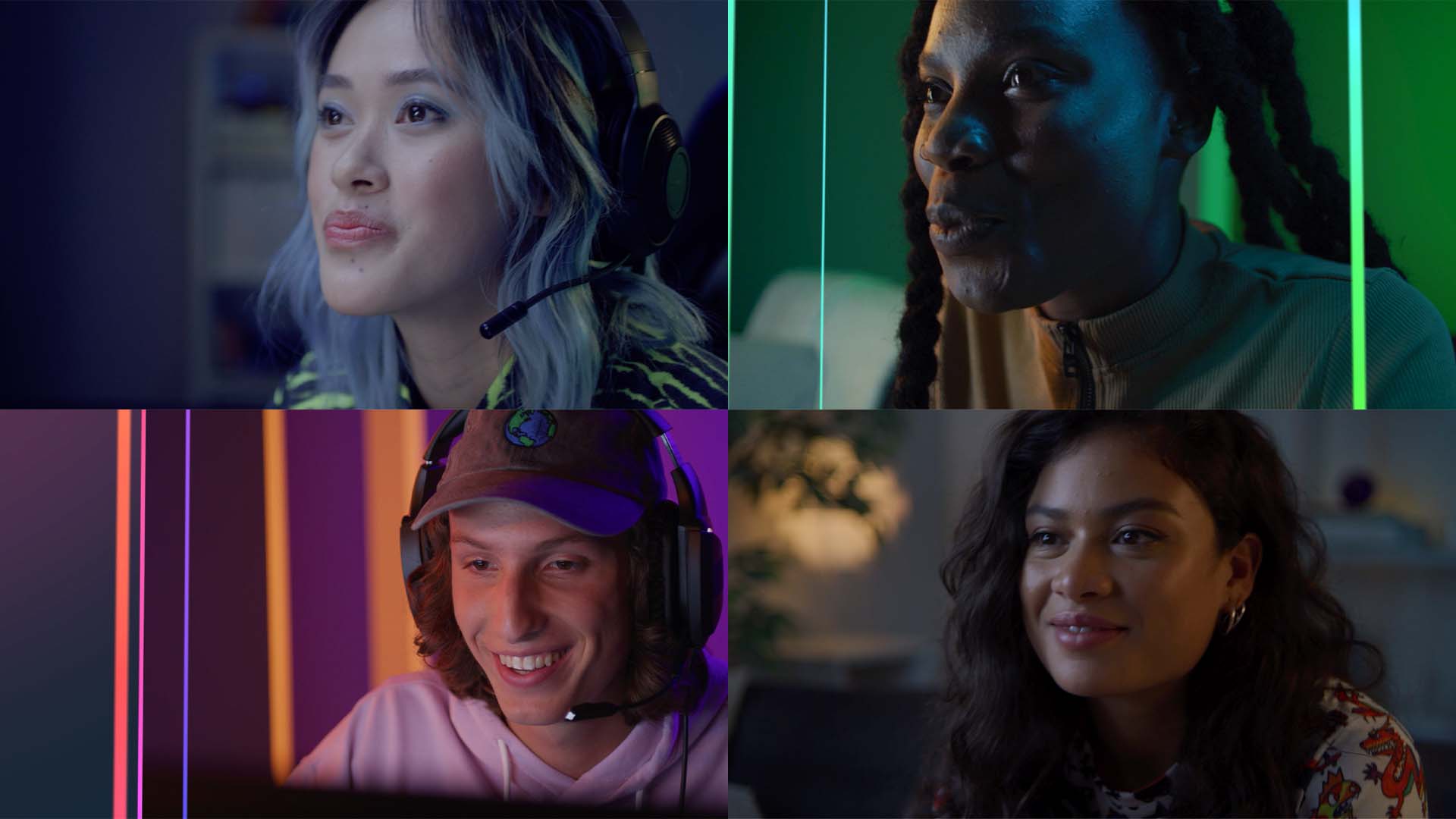We shot our actors in dark, LED-lit studios to present a modern gamer vibe throughout our trailer. Our gamers also used a number of RGB gaming accessories to underline the cross-platform nature of the service, such as console controllers, and PC peripherals.