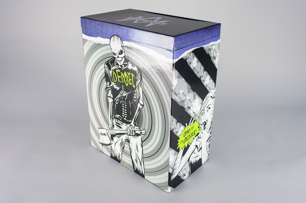 TAKEOFF designed and produced the box and all of its contents, with the final product aptly named ‘The Return of DedSec Collector’s Case’. The collector’s edition box came with a kinegram/barrier grid-styled sleeve, to give it an ‘animated’ effect when the player removed it.