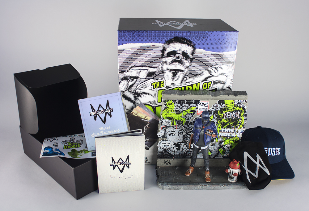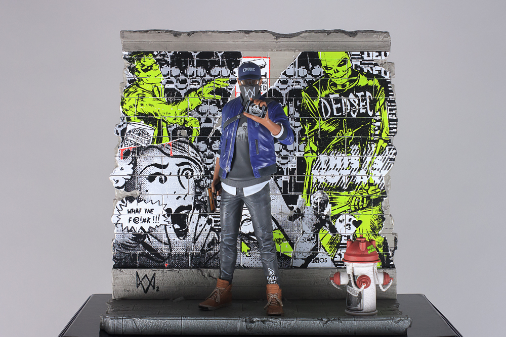 The collector’s edition featured a 27cm tall statue of Watch Dogs 2 protagonist Marcus Holloway in front of a street wall covered in incredible graffiti artwork. The Return of DedSec Collector’s Case also featured collectibles including a 64-page artbook, a replica of Marcus’s cap and scarf, a double-sided map of in-game San Francisco, exclusive lithographs, laptop stickers and the Gold Edition of the game with additional digital content.